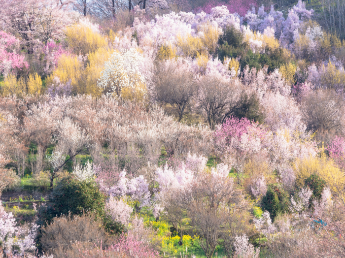 花もも、桜、里山の彩り
