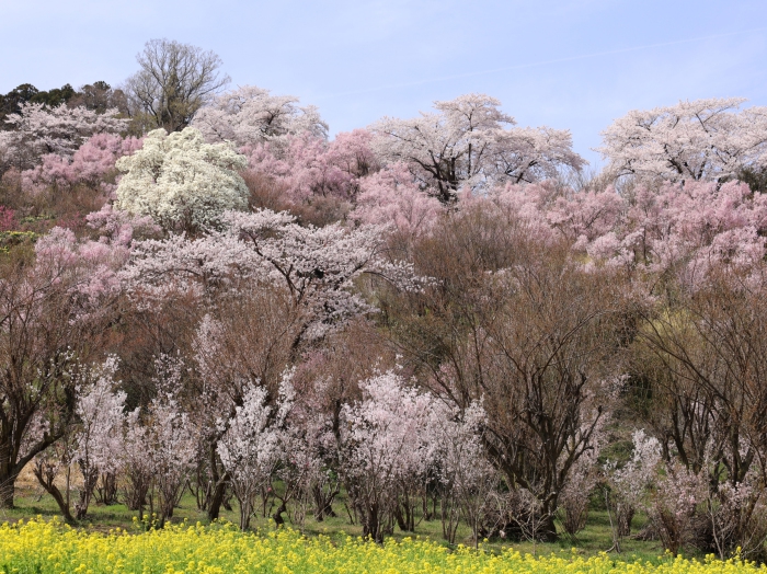 里山全体が花に包まれる風景は