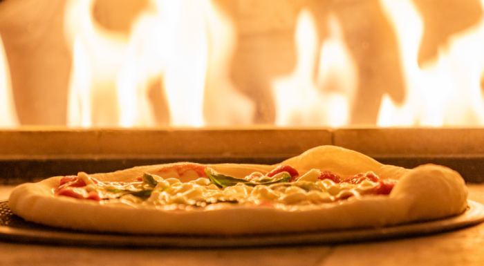 自慢のピザは会場内のピザ窯で焼き上げる本格派