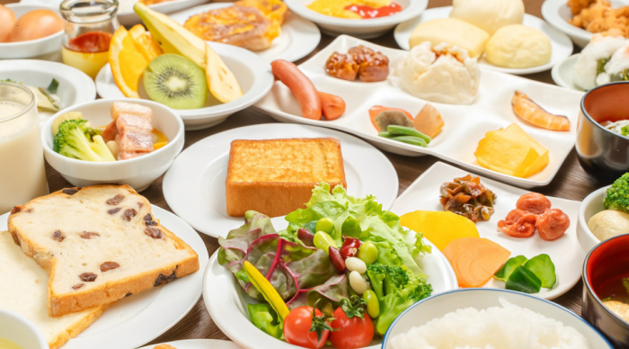 バイキング形式での朝食
