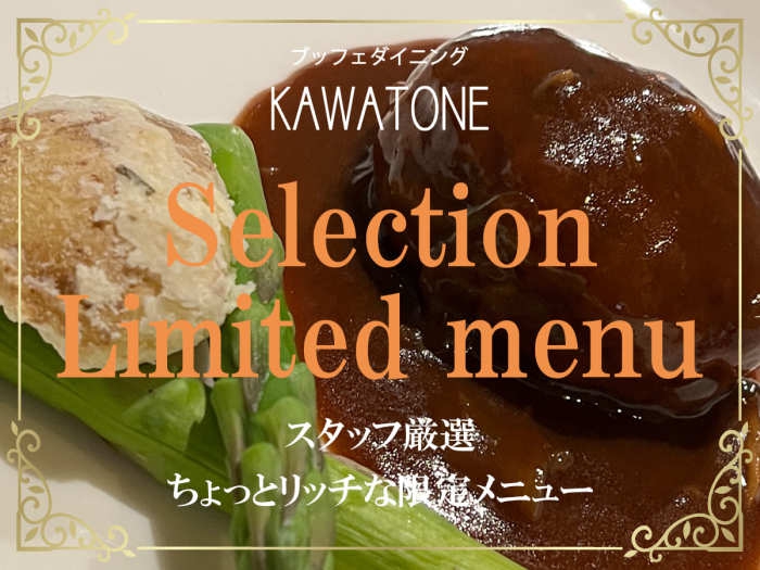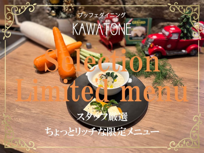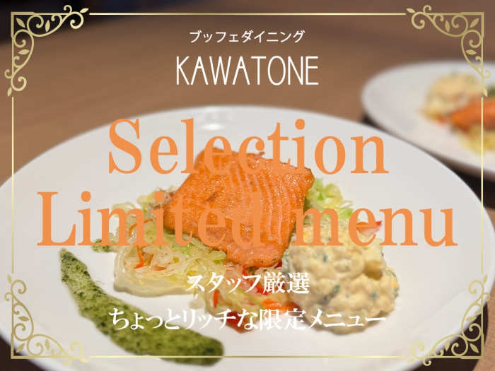 作りたてグルメを食べ放題で味わうダイニングブッフェ「KAWATONE」食欲をそそる香りに音、四季折々の旬にこだわった出来たてのお料理をご堪能ください。