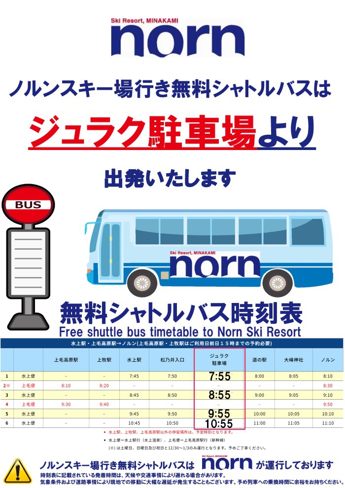 • JR上越線水上駅 徒歩約10分(無料送迎バスあり)