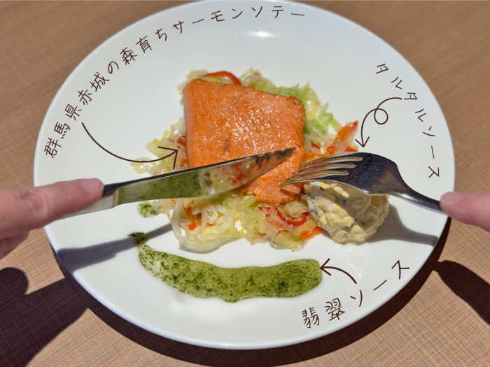 群馬県産赤城の森育ちサーモンをさっとソテーして