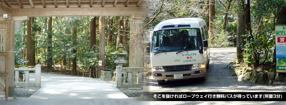(拝殿脇より無料送迎バス 28名) バスの所要時間 3分